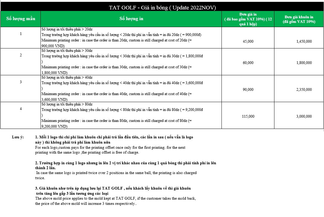 Để biết thêm chi tiết, vui lòng liên hệ xưởng in bóng golf của TAT GOLF